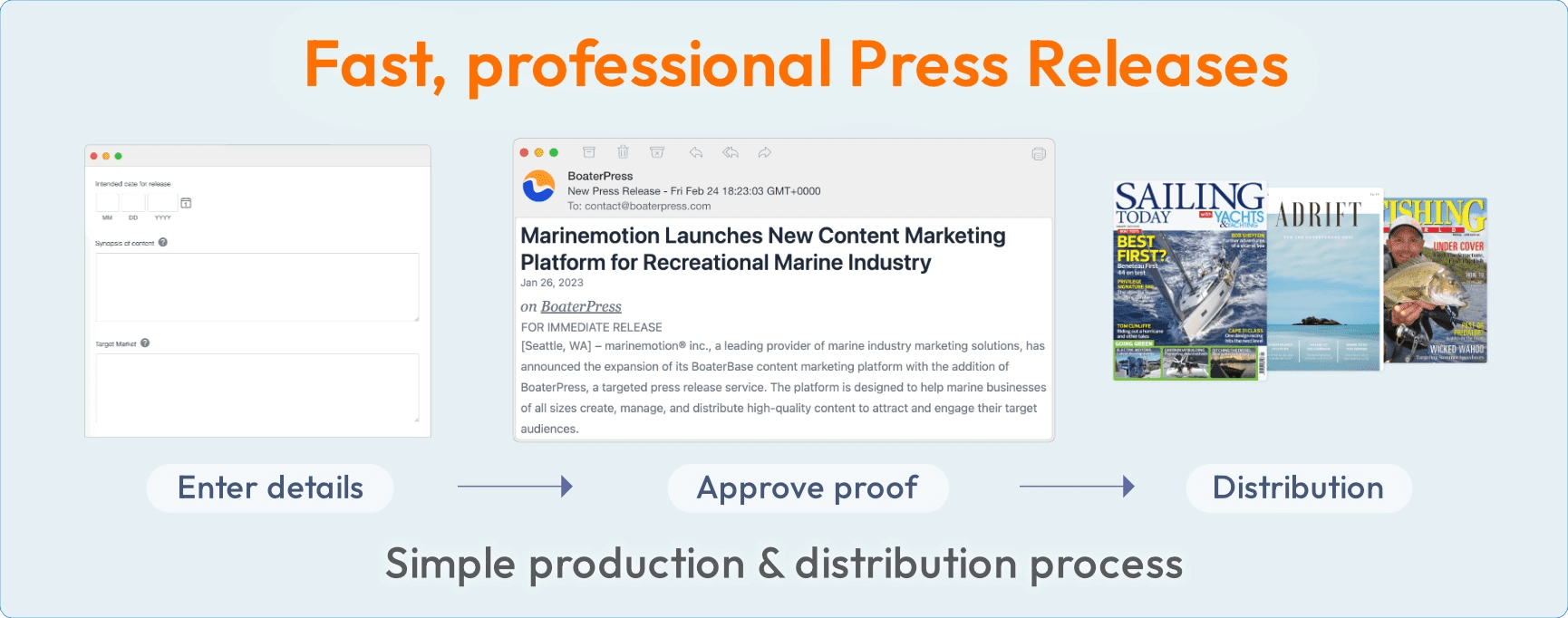Our distribution platform automates access to marine media outlets and your marketplace.
